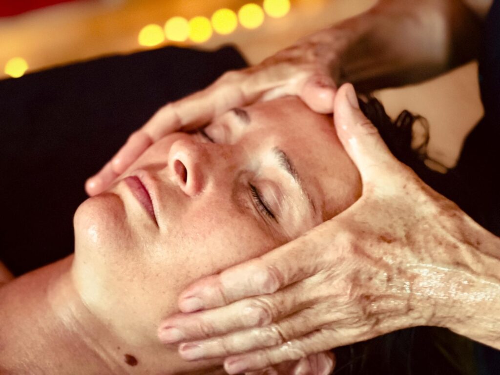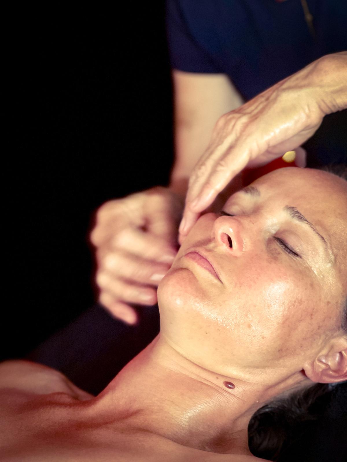 - en s’inspirant de la réflexologie faciale et de la fascia